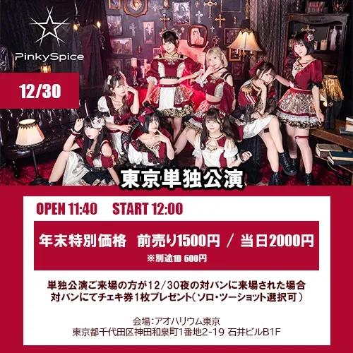 【料金】 年末特別価格 前売り1500円/当日2000円(別途1ドリンク代 600円) ※単独公演ご来場の方が12/30夜の対バンに来場された場合、対バンにてチェキ券1枚プレゼント(ソロ・ツーショット選択可)